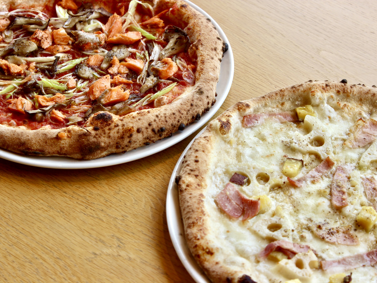 センターハウス2階のピッツェリア トニーノでは、れんこんの食感がアクセントになる「ラディーチ」と、鮭の旨みとトマトソースの酸味がクセになる「サルモーネ」を11月末まで提供中!