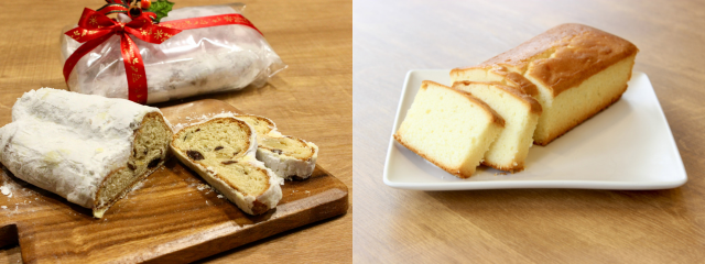 「珈琲とおやつの秋」では、当道の駅人気のパウンドケーキや、クリスマススイーツ シュトーレンを1切れからご用意!